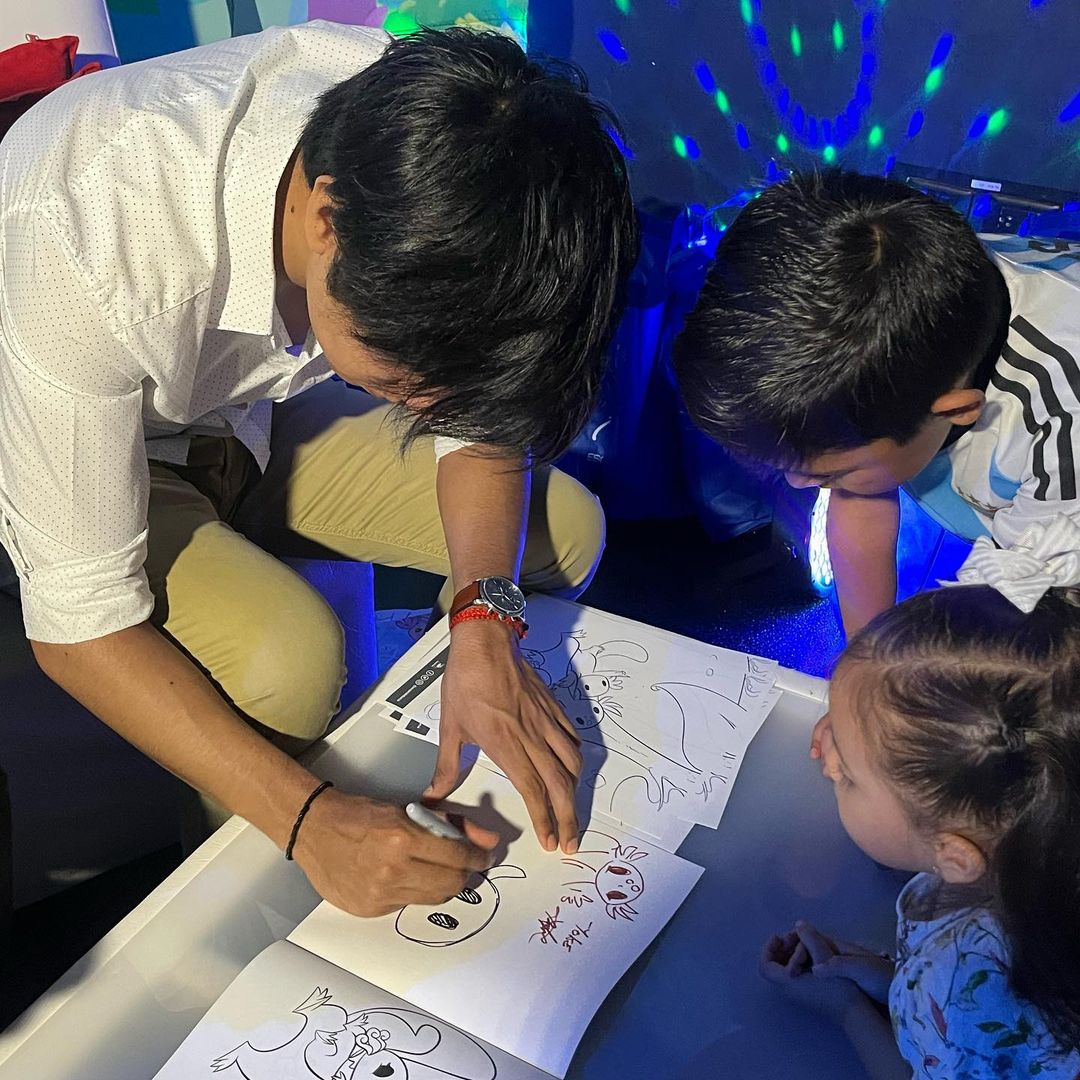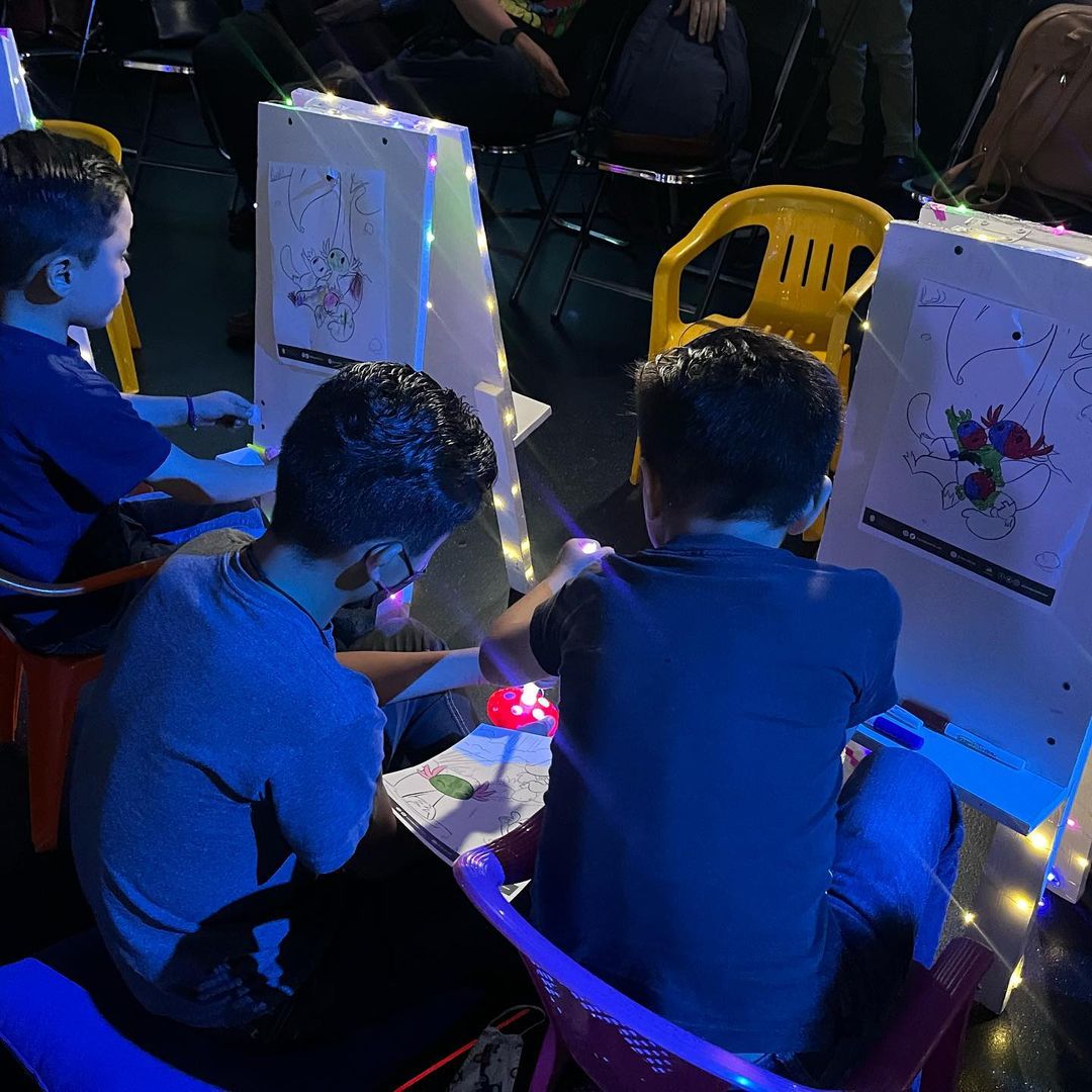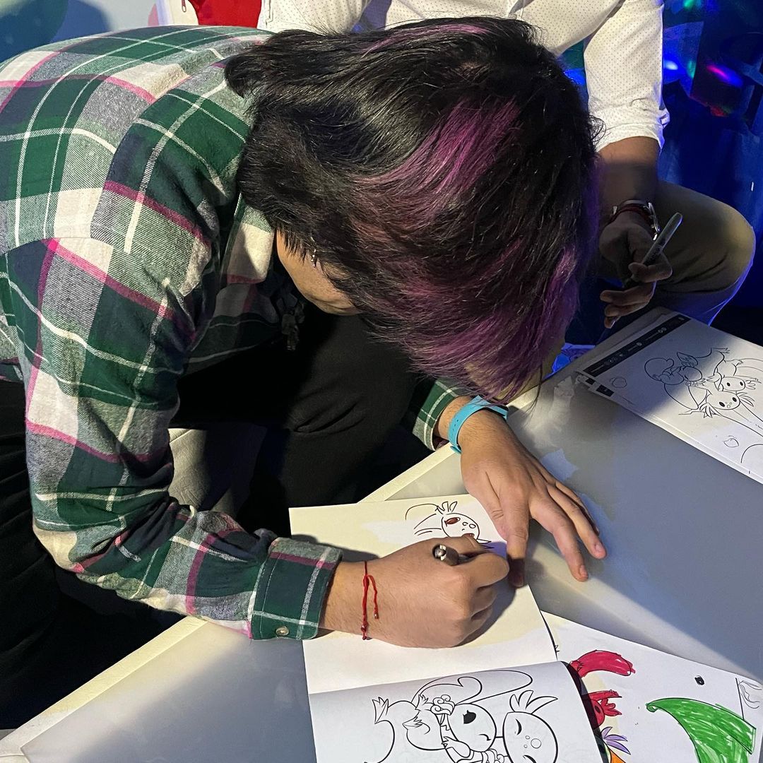 Axo aventuras Libro para Colorear, de @Axo.Oficial, las bellas ilustraciones de @epic_yoke y Alan Ituriel se divirtieron con los pequeños asistentes, quienes bajo una atmosfera azul y verde fluorescente se iluminaron los axolotes. La tarde transcurrió en una charla que nos mantuvo atentos a todos mientras hablaron de datos curiosos del pequeño anfibio. Aquí algunas imágenes de lo que sucedió, la firma de algunos libros y más: