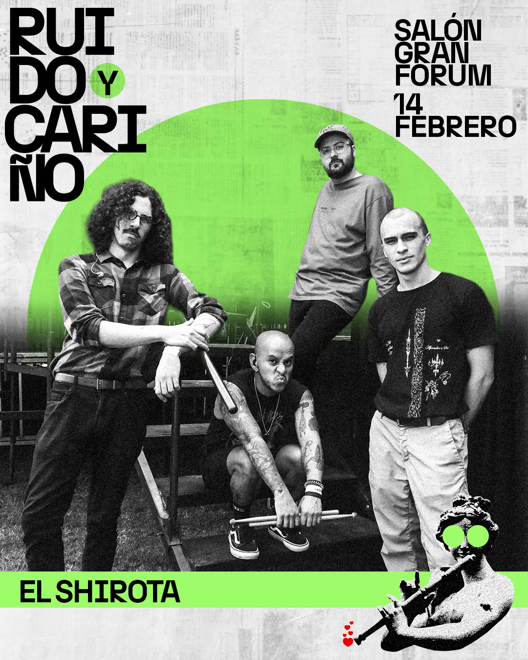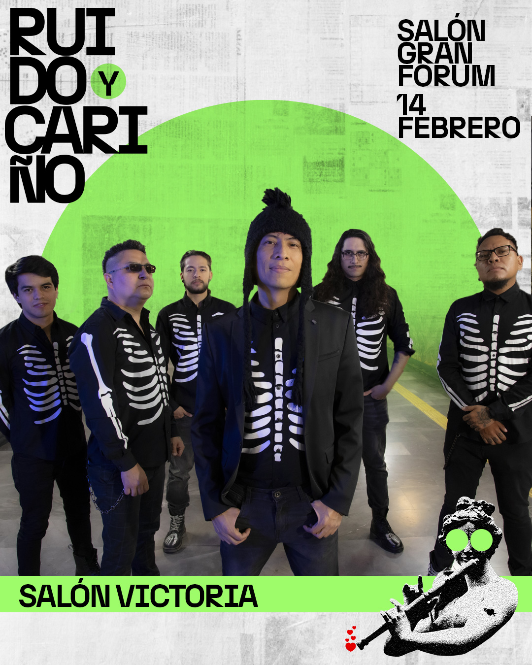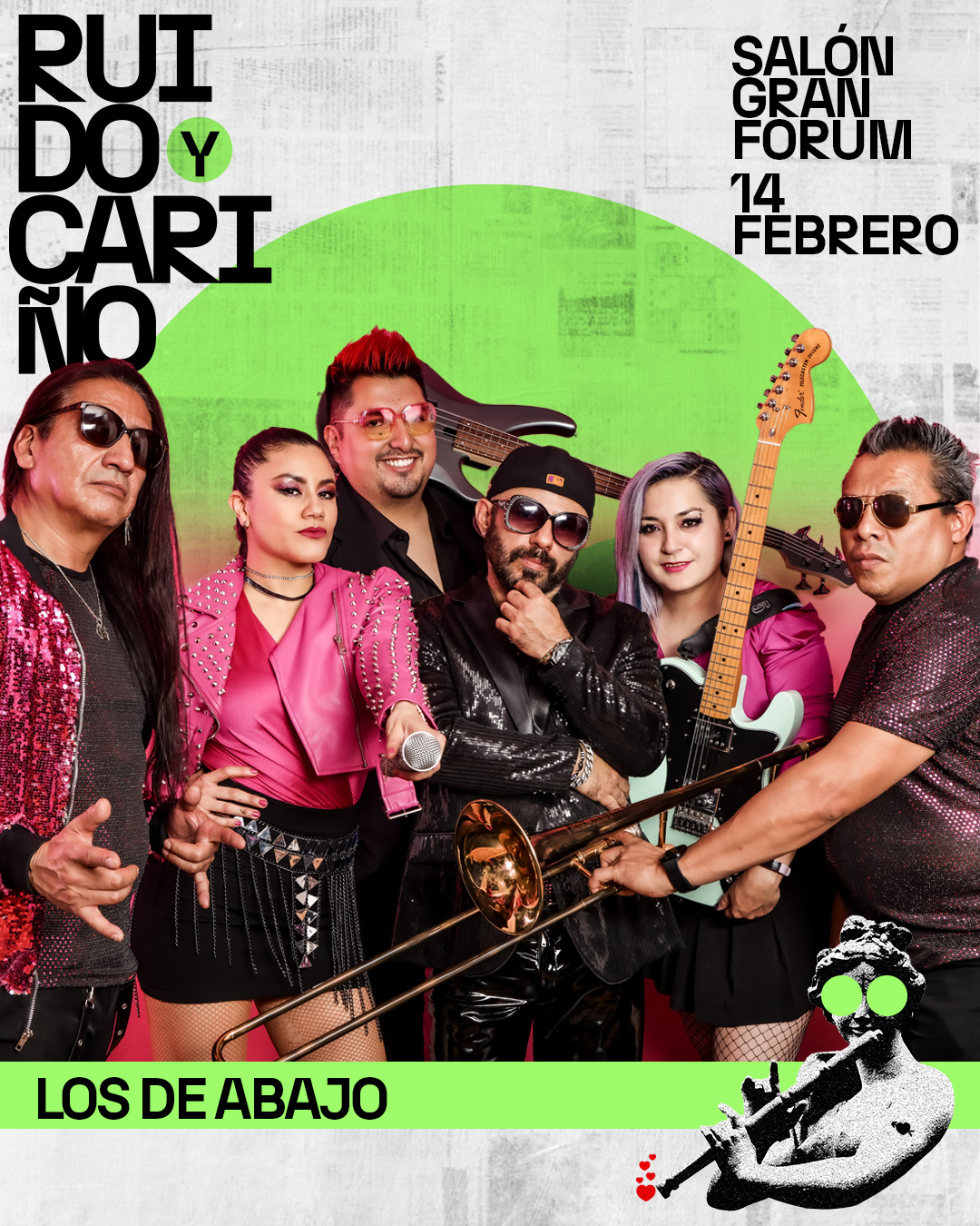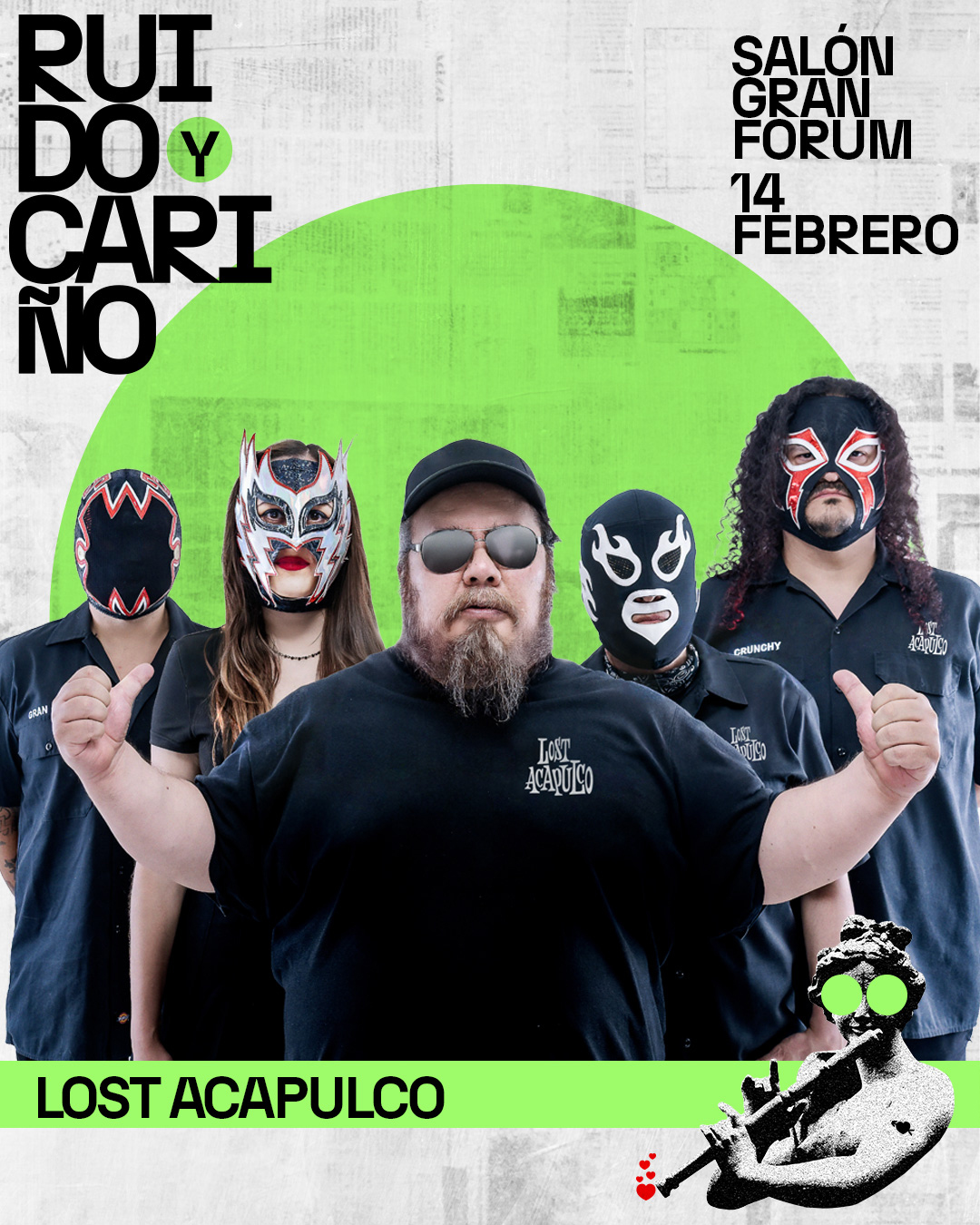Este 14 de febrero llega al Salón Gran Forum, en Coyoacán, CDMX, el «Ruido y Cariño Fest», una reunión con seis de las bandas más queridas y establecidas en el Rock, Ska y Punk mexicano: Los de Abajo, Lost Acapulco, Salón Victoria, Los Esquizitos, Las Ultrasónicas y, como relevo generacional tendremos a El Shirota.