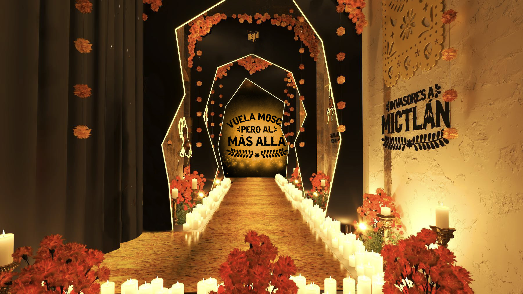 Bajo el nombre «Invasores a Mictlán», la marca rinde un homenaje a los insectos que nos ha ayudado a eliminar a lo largo de los años, recordando con ingenio y teatralidad la importancia de mantener nuestros hogares protegidos. En este recorrido sensorial, los visitantes descubrirán un universo inspirado en el Día de Muertos, lleno de flores de cempasúchil, luces, frases populares y toques de tecnología, que transforman la despedida en una celebración viva.