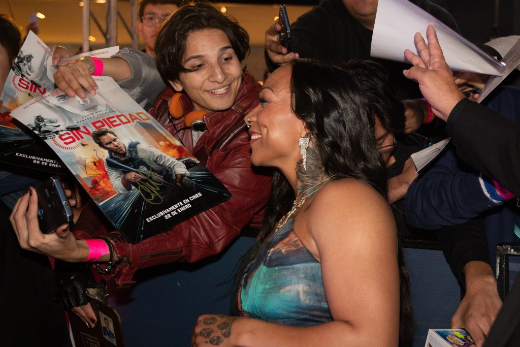Asimismo, Kali Reis se mostró feliz ante el cariño de los fans mexicanos que se dieron cita. La actriz lució un bello vestido de varios tonos azules con el que marcó presencia en el evento. «Estamos muy agradecidos de estar aquí con ustedes en ciudad de México, con los fans más increíbles. Celebremos el estreno de «Sin piedad». Esperamos que la disfruten, hicimos la película para ustedes. Todo el equipo de personas que están aquí trabajaron incansablemente por años, para hacer esta cinta. Pusimos nuestro corazón y almas en ella ¡qué la disfruten!».