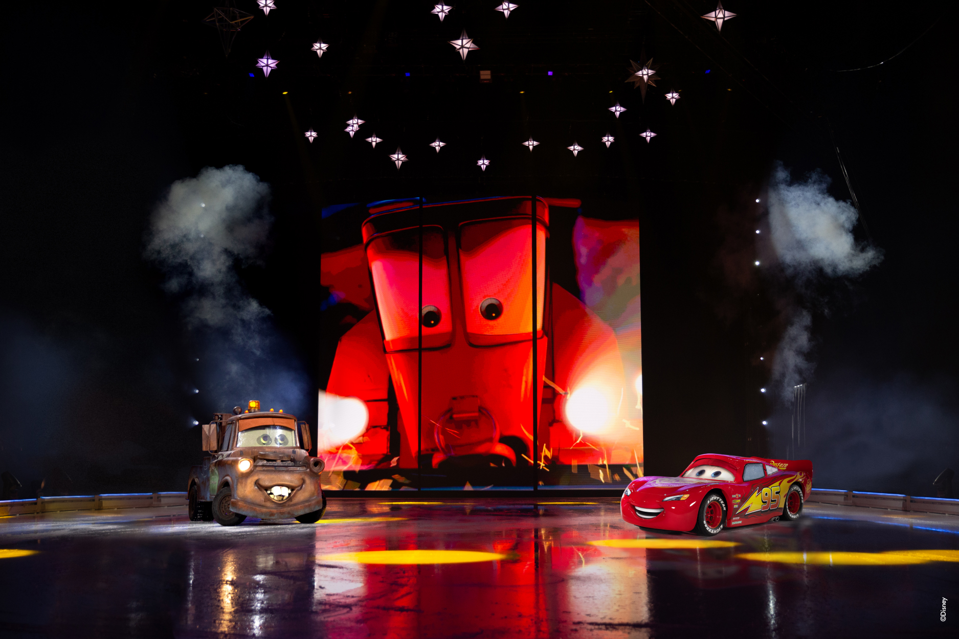 Uno de los espectáculos que la gente no puede perderse, es sin duda el segmento dedicado a la película de Cars, porque causa un impacto indescriptible y la gente aplaude emocionada cuando ve a cada uno de los personajes sobre la pista de hielo.