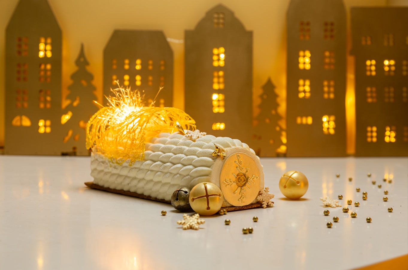 - Bûche de Noël: La bûche de Noël de Sofitel Mexico City Reforma se convierte en un reflejo de esta tradición. Con su blanco resplandeciente y destellos dorados, en donde captura la elegancia de la Navidad francesa, junto al ponche mexicano. Cada rebanada es una sinfonía de sabores que abraza las raíces culturales de México. La almendra y el piloncillo danzan con la dulzura del ponche, la canela y la flor de jamaica tejen la esencia especiada que evoca las festividades mexicanas, mientras que la guayaba, el tejocote y el chocolate blanco añaden capas de sorpresa, como una reminiscencia de las tradiciones culinarias de México fusionadas con técnicas francesas. $650 pesos.