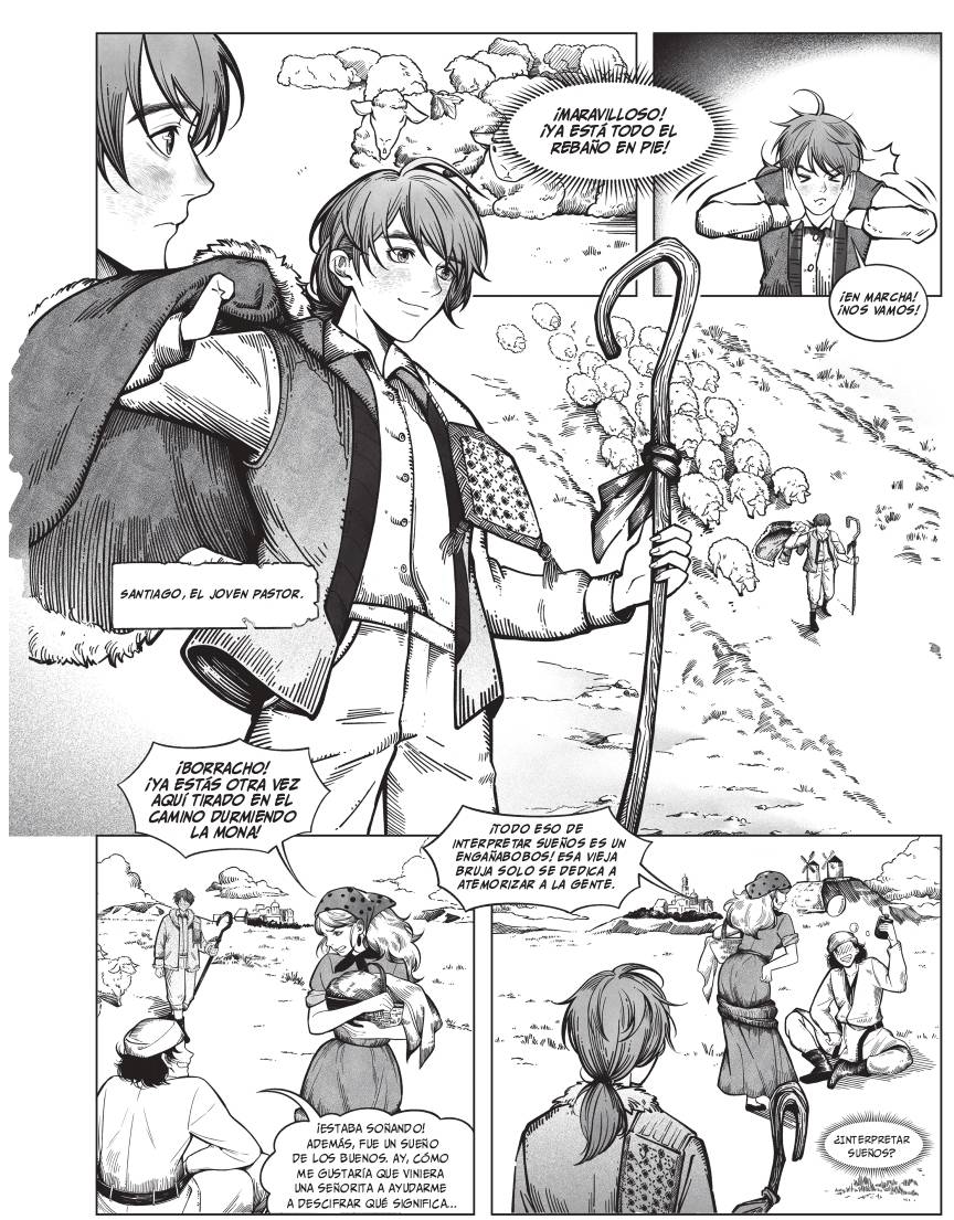 El dibujo clásico del manga, líneas nítidas y negras que crean una sensación de limpieza y contraste, facilita la lectura y hace que los personajes y objetos resalten del fondo con profundidad y volumen. Utilizando inspiración de clásicos como Osamu Tezuka, manga sh nen y manga seinen, la edición exclusiva en tapa blanda no solo moderniza un clásico contemporáneo, sino que también ofrece una nueva puerta de entrada a las profundas enseñanzas de El Alquimista.