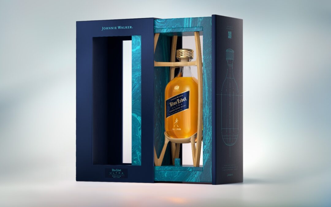 El diseño, el lujo, la innovación y la sostenibilidad en una sola botella: Johnnie Walker Blue Label Ultra. es la más liviana creada por la marca hasta ahora, es el resultado de cinco años de investigación y experimentación con vidrio liviano de alta resistencia.