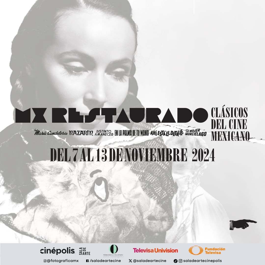 La iniciativa forma parte del festival de cine MX Restaurado, que se realizará en 52 salas de cine, en 33 ciudades, del 07 al 13 de noviembre, a través de Sala de Arte Cinépolis. Se trata de una celebración a la historia del cine nacional, y nos invitan a ser parte de esta gran fiesta mexicana en donde se exhibirán seis títulos clásicos del cine mexicano: María Candelaria, Nazarín, Distinto amanecer, En la palma de tu mano, Ahí está el detalle y La mujer murciélago.