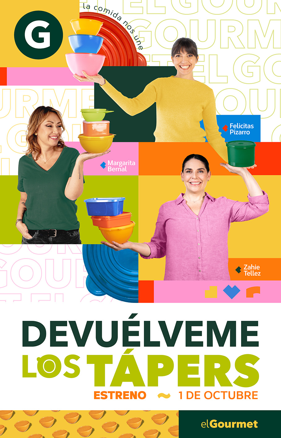 Un gran estreno de producción original llega a elGourmet con tres icónicas chefs latinoamericanas: Devuélveme los tápers, de la mano de Zahie Téllez, Felicitas Pizarro y Margarita Bernal. Se estrena hoy martes 01 de octubre a las 20:00 horas, con episodios nuevos de lunes a viernes.