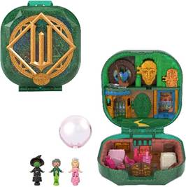 Wicked: For Good Set Polly Pocket: Lleva la magia del mundo de Oz a donde quieras y desafía la gravedad con este set de Polly Pocket inspirado en Wicked. Por fuera, luce el característico color verde de ciudad Esmeralda, con detalles dorados que rinden un homenaje directo a la cinta, incluye dos accesorios temáticos. La muñeca de Glinda puede flotar en una burbuja, mientras que Elphaba vuela con su sombrero, descubriendo el mini mundo del set. Ya aestá a la venta y su costo es de 899 pesos.