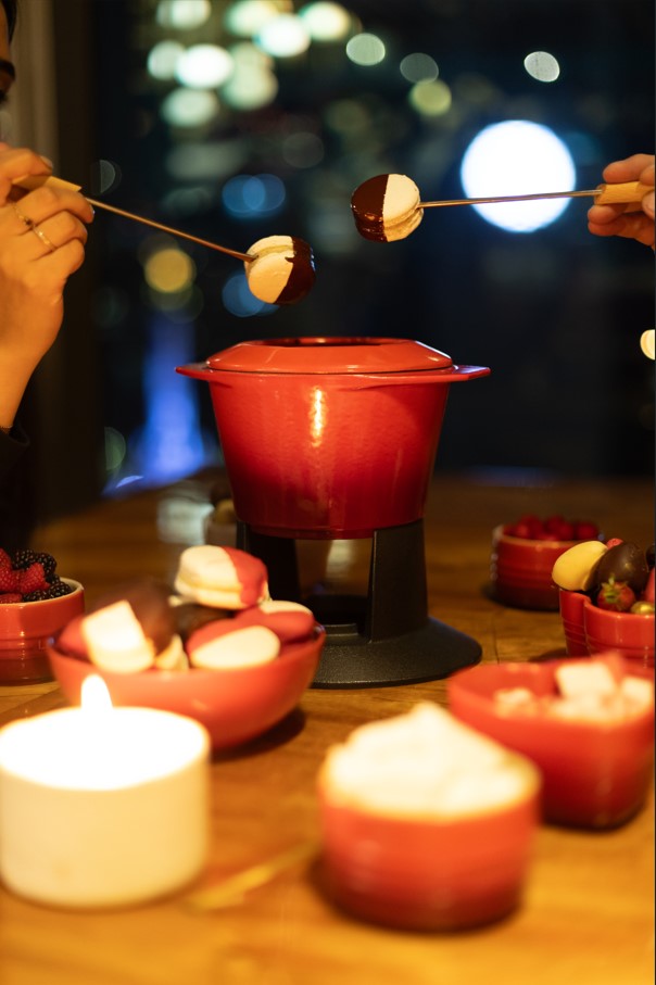 - Travesía de sentidos: Balta, el restaurante en el piso 12, ofrecerá un ambiente romántico con una experiencia culinaria inspirada en los sabores de las costas de México y del Mediterráneo. Esta velada contará con un menú de 4 tiempos, que incluye delicias como trucha salmonada curada y camarones en mole rosa, estará disponible por $2,200 MXN por persona. Además de un dulce toque de romance con el «Fondue au Chocolat», una experiencia de fondue con fresas y malvaviscos, acompañada de champagne Louis Roederer, por $1,900 MXN por pareja, disponibles del 10 al 18 de febrero de 16:00 a 18:30 hrs.