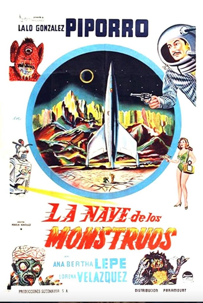 Estrenada en 1960, La Nave de los Monstruos sigue a dos mujeres venusinas en una misión para encontrar «machos» que puedan llevar de regreso a su planeta, quienes accidentalmente aterrizan en Chihuahua. Ahí se encuentran con Laureano, un ranchero mitómano que las cautiva con su carisma y sus canciones. La película combinó, de forma tan extraña como creativa, mujeres del espacio, naves espaciales, vampiros, robots y música norteña.