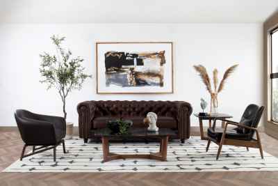 El sofá Chesterfield que nunca pasa de moda: El sofá Chesterfield es un clásico de la decoración inglesa que no solo persiste hasta nuestros días, sino que se ha apropiado del término ‘sofá’. Este modelo se caracteriza por disponer de unas botonaduras artesanales con uniones que configuran rombos en toda su estructura. Posee un respaldo muy bajo, a la altura de los reposabrazos, que a su vez tiene aplicación artesanal de tachuela individual. Es un sofá que transpira nobleza y suntuosidad, fabricado para durar muchísimos años.  El Sofá de Piel Windsor Café, fiel al modelo original de cuero marrón, es una declaración definitiva del buen gusto atemporal.