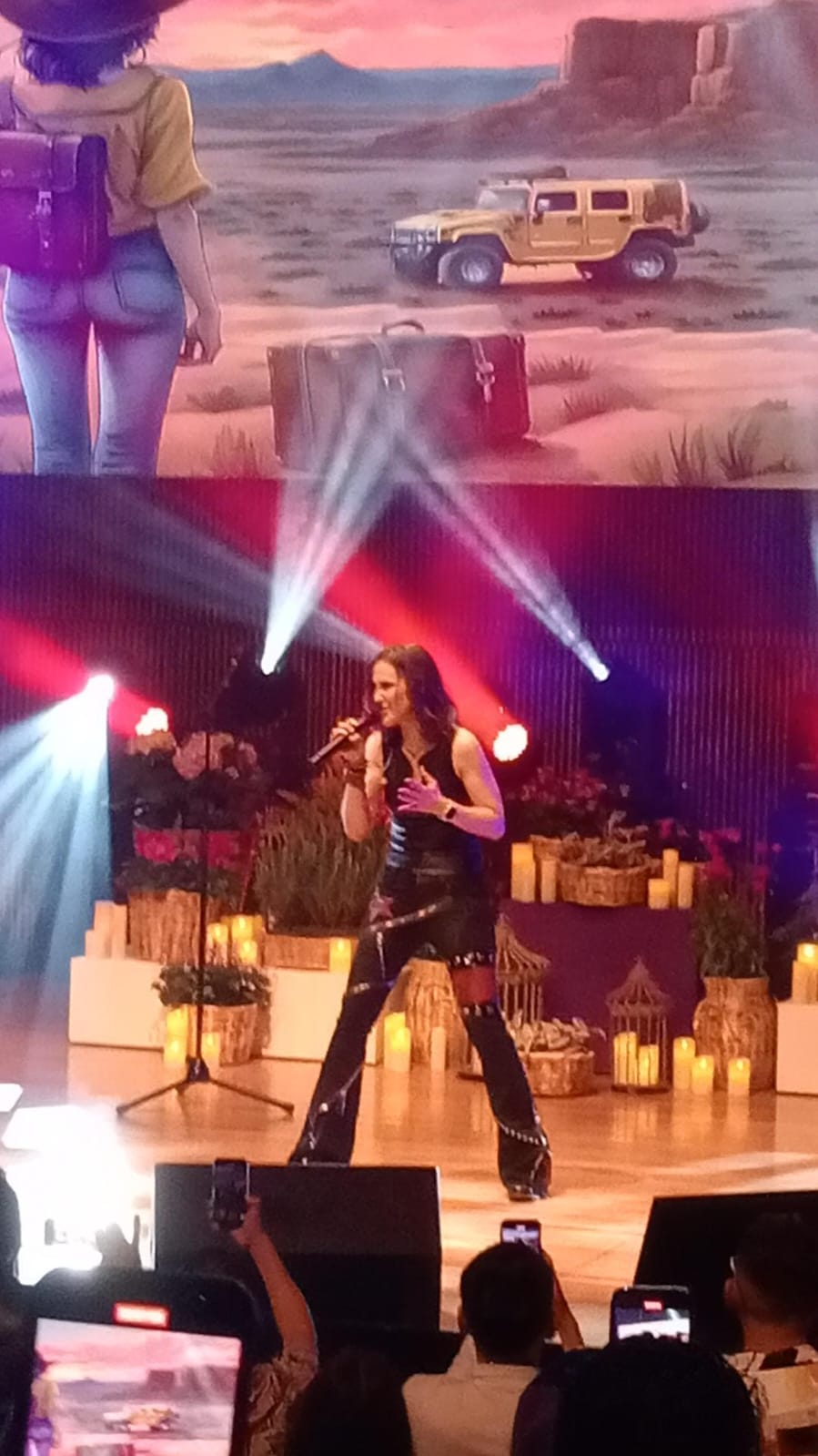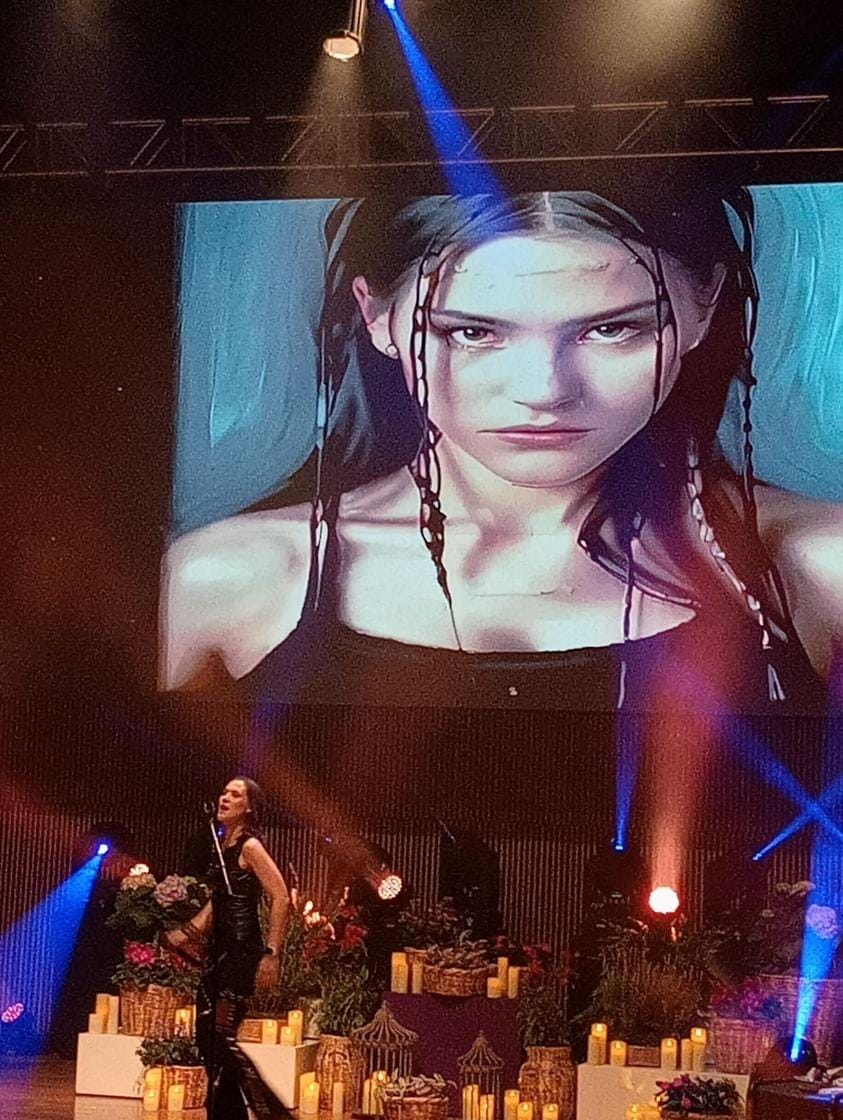 La noche comenzó con las estrofas más exitosas de la carrera de la cantante, pequeños fragmentos que adelantaban lo que sonaría durante la velada, y mientras una pantalla transmitía, letra por letra, el nombre de la intérprete.