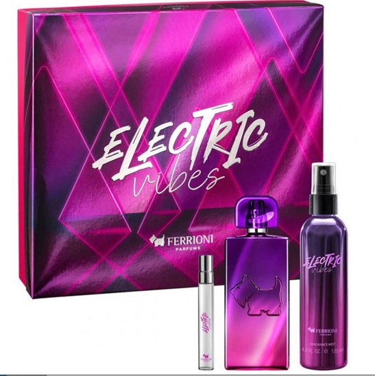 Para ellas: Ferrioni Electric Vibes for Woman: Es la fragancia ideal para destacar y transmitir una energía sensual y alegre, con notas inspiradoras de maderas cremosas que lo hacen perfecto para vivir los momentos intensamente y tener recuerdos memorables. En sus notas de salida vas a encontrar: fresa, pimienta rosa y esencia de mandarina. En las notas del corazón: flor de Tiaré, pachuli, pétalos de magnolia. Finalmente, en las notas de fondo: ladaño español y almizcles.