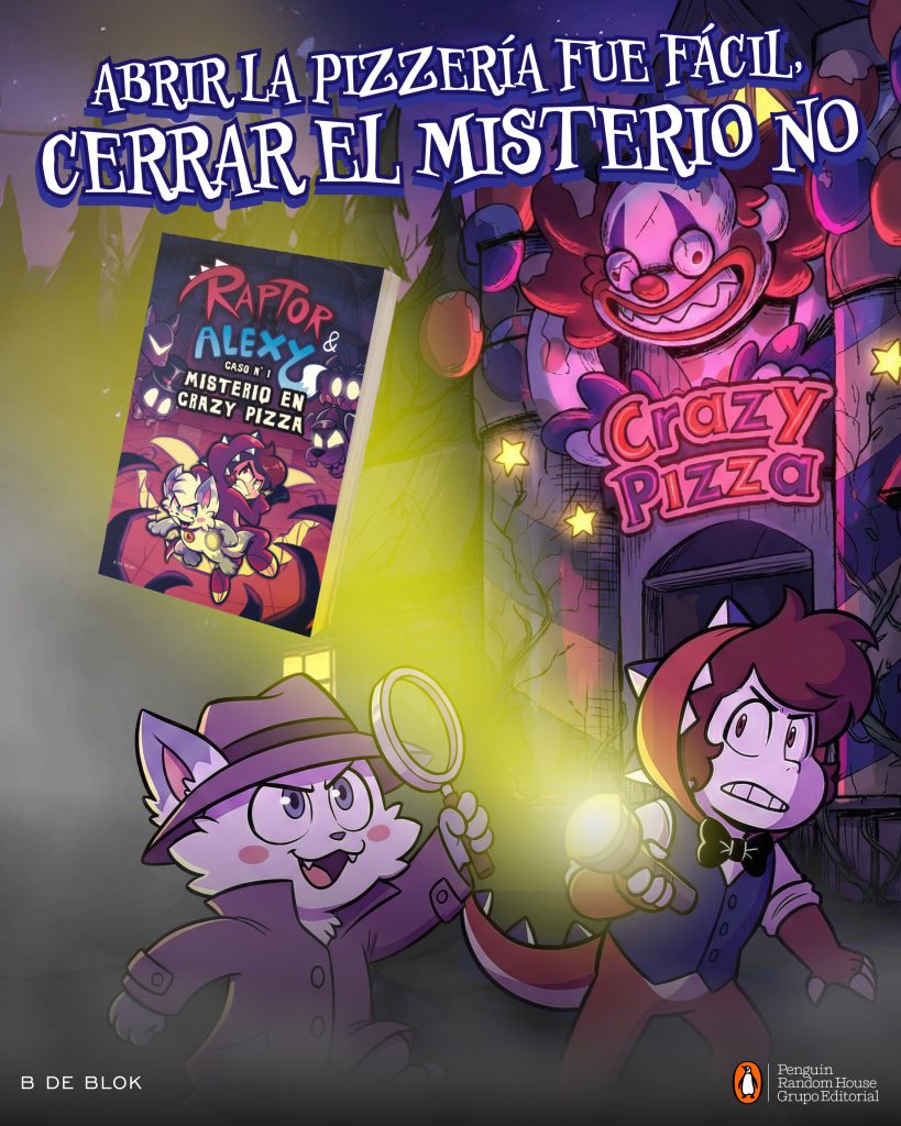 Con más de 18 millones de suscriptores en conjunto, Raptor (Ari Gonzalo Coronel Vera) y Alexy («Un pequeño lobo muy curioso) se unen para llevar una nueva y adictiva historia a toda su comunidad, esta vez, lejos de la pantalla. Se trata de su primer libro: «Raptor y Alexy – Caso No. 1 Misterio en Crazy Pizza».