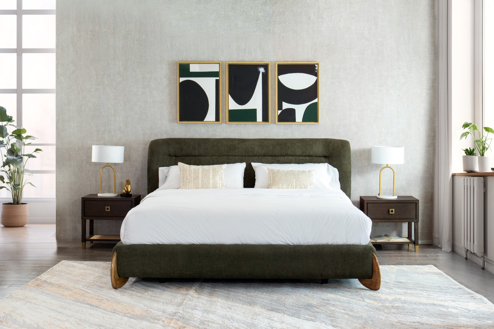 Color verde oliva que te invita al relax: Este tono ha sido protagonista en las principales ferias internacionales de decoración. En el dormitorio, puede ser incorporado de manera armoniosa en la cabecera de la cama, mediante una tela tapizada. Esta elección de color promoverá un ambiente relajante y propicio para el descanso. Combínalo con tonos crema, blancos o negros.