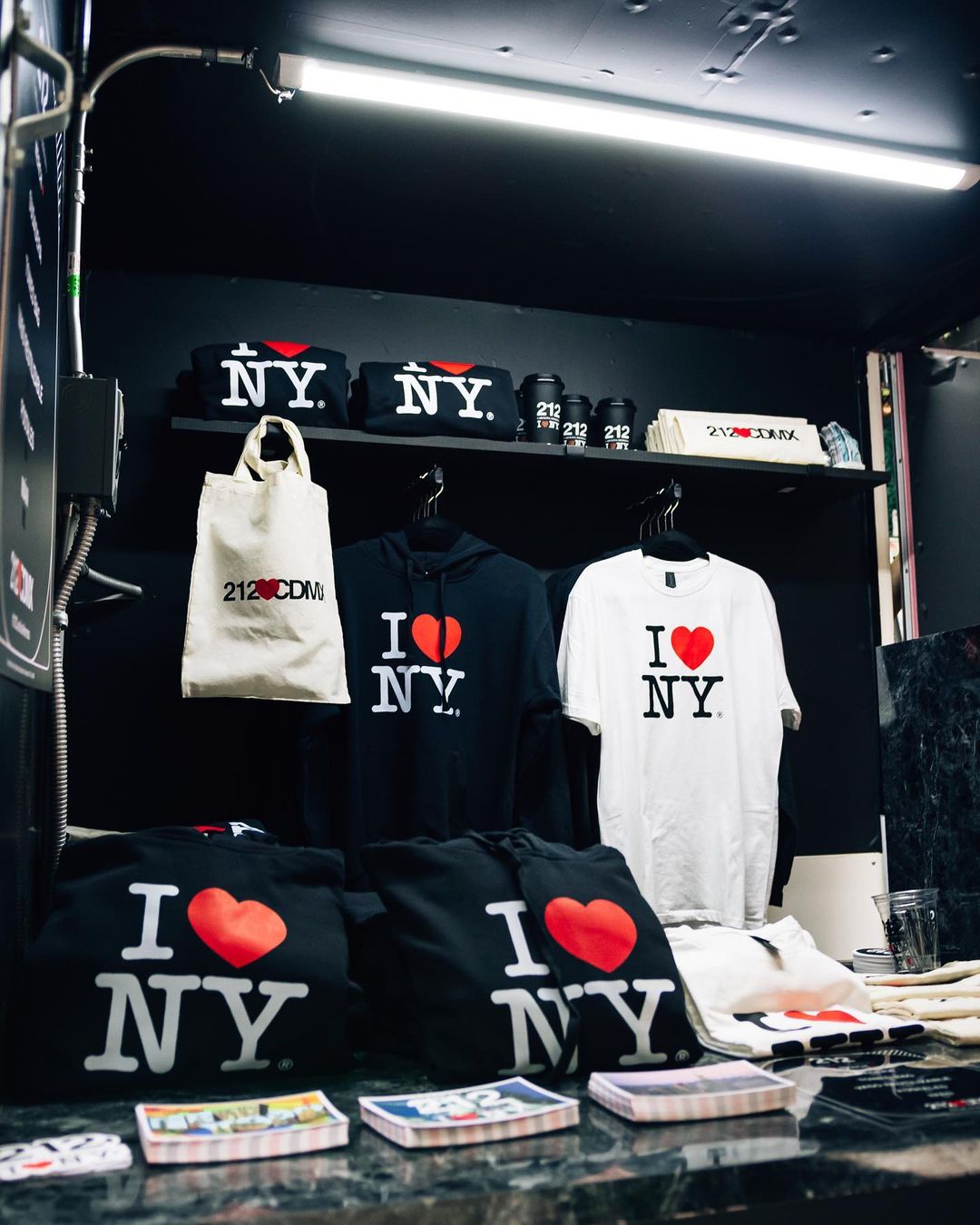 Asimismo, hay un espacio de merchandising que destacan por tener logotipos de NY y la fragancia de edición limitada, como playeras, tote bags, postales, sudaderas, adheribles, vasos para el café y mucho más.