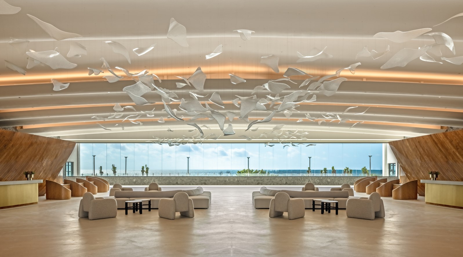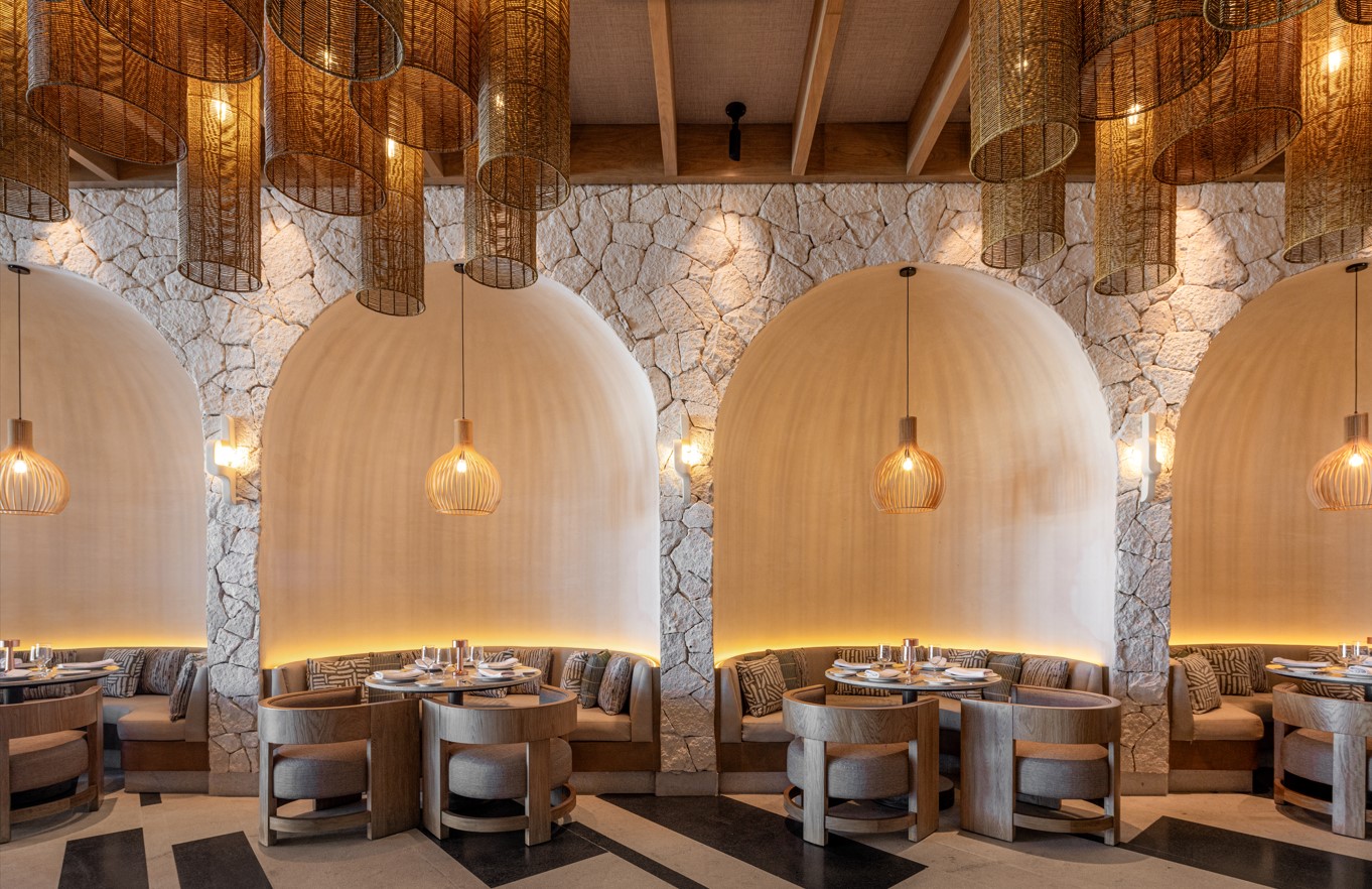 Si esto te parece poco, espera a leer sobre el menú que te pueden ofrecer. Su gastronomía destaca por presentar diversos conceptos culinarios dentro de los 27 puntos de comida y bebida del resort, que van desde restaurantes cinco estrellas y snacks junto a la piscina hasta mercados de comida internacional y taquerías. Concebido por el prestigioso HKB Design, cada lugar está curado individualmente para crear un entorno único e inspirado, cada restaurante muestra características únicas como azulejos de diferentes tonos y texturas, elegidos para coincidir con la estética del lugar. Además, el hotel cuenta con grandes espacios cuyas paredes están cubiertas de Chukum en varios colores, el yeso hecho de la resina del árbol endémico del mismo nombre, aportando calidez y textura, a la vez que regula la temperatura de los espacios.